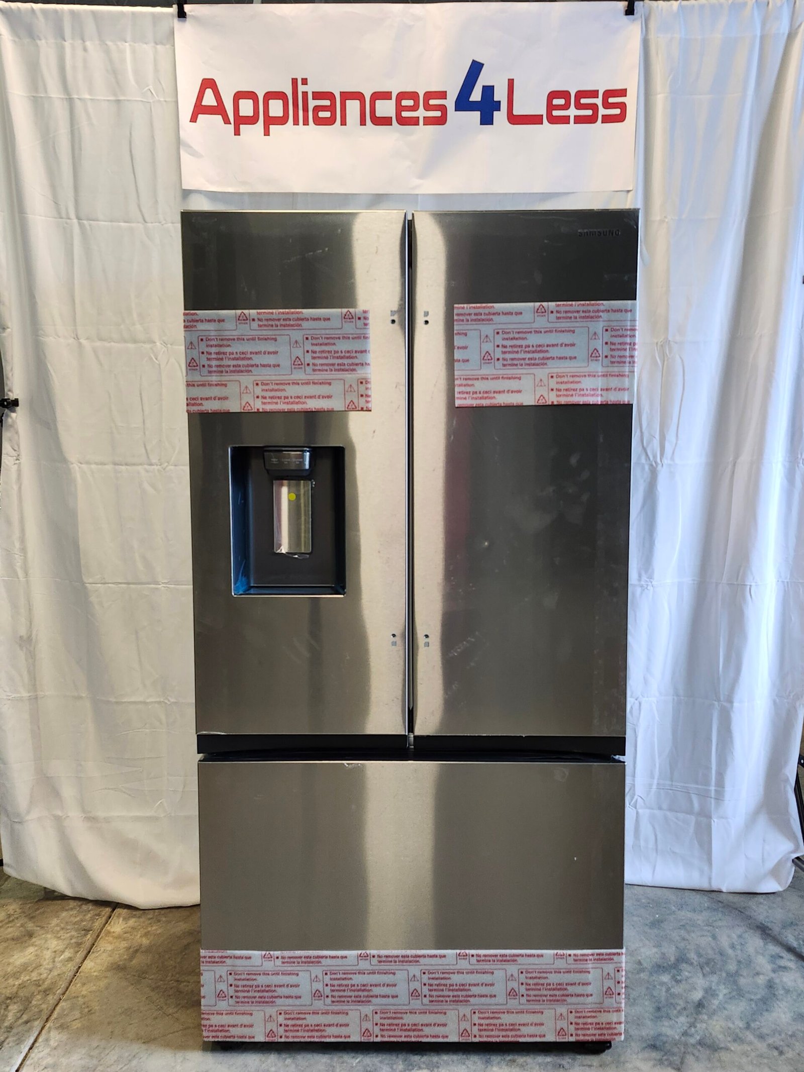 Dimensions: H 70 in, W 35.75 in, D 36.25 in Samsung Mega Capacity 4-Door French Door refrigerator with 30 cu. ft. Refrigerator comes with 4 types of ice and modern design. Store more groceries, including big and bulky items. The Dual Auto Ice Maker makes two types of ice - cubed or Ice Bites while the external dispenser offers two additional ice options, curved and crushed.Highlights